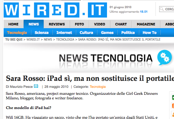 I recently gave a little interview to Wired Italy about how I use the iPad (in Italian) and I thought it would be interesting to share some other reflections I’ve had after a month of using the iPad.