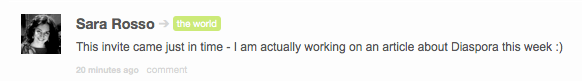 That’s about it for now – a simple, clean interface with nothing new or groundbreaking, and a whole lot of features missing we’ve become used to through our blogs and Facebook. I’ll be keeping my eye on Diaspora, though.