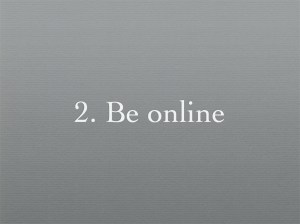 The second main point is “Be online.” Many companies feel that they are online because they have a website where they communicate about or sell their products and they’re present on a few social networks.