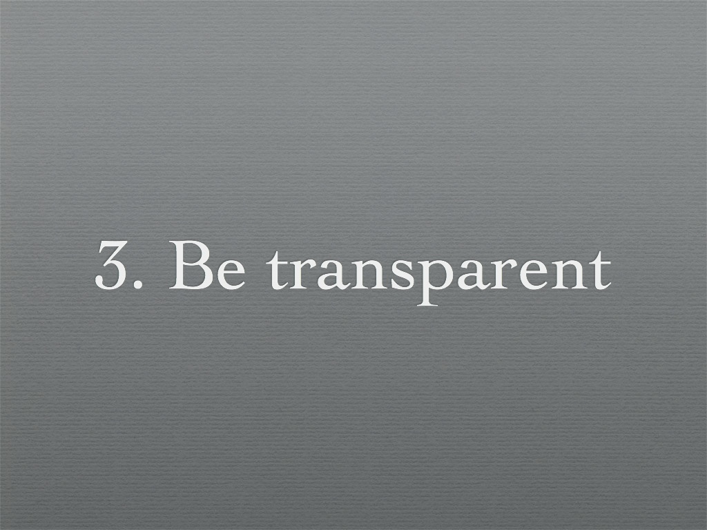 The third point is “Be Transparent.” Transparency plays a big role in a distributed company because physical distance between employees becomes less important than the distance between the employee and the information they need to get their job done, including the discussions and decisions I mentioned before.