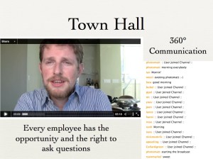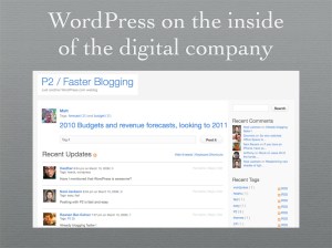 Of course, I couldn’t help but pimp the fact that we use WordPress to power these blogs, and not only WP but a specific theme that enables frontend posting and comments are immediately expanded and visible (comparable to a Facebook or Twitter environment – the backend is of no importance to most contributors) – read more about the P2 theme here (hint: it’s free!) and how P2 changed Automattic.