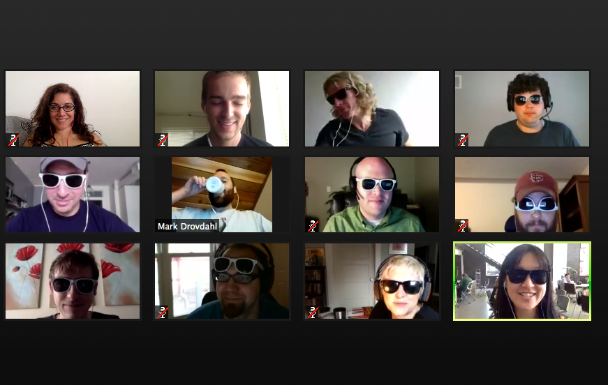 How we ‘meeting’ at Automattic – my WordPress sunglasses are sitting in the U.S. waiting for me.